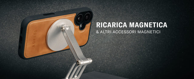 La nostra custodia è progettata per collegarsi perfettamente al caricabatterie MagSafe ufficiale di Apple. La ricarica MagSafe richiede un alimentatore con un'uscita minima di 20 W, e la nostra custodia include una bobina magnetica dietro la pelle per garantire che il tuo telefono sia sempre carico e pronto all'uso.